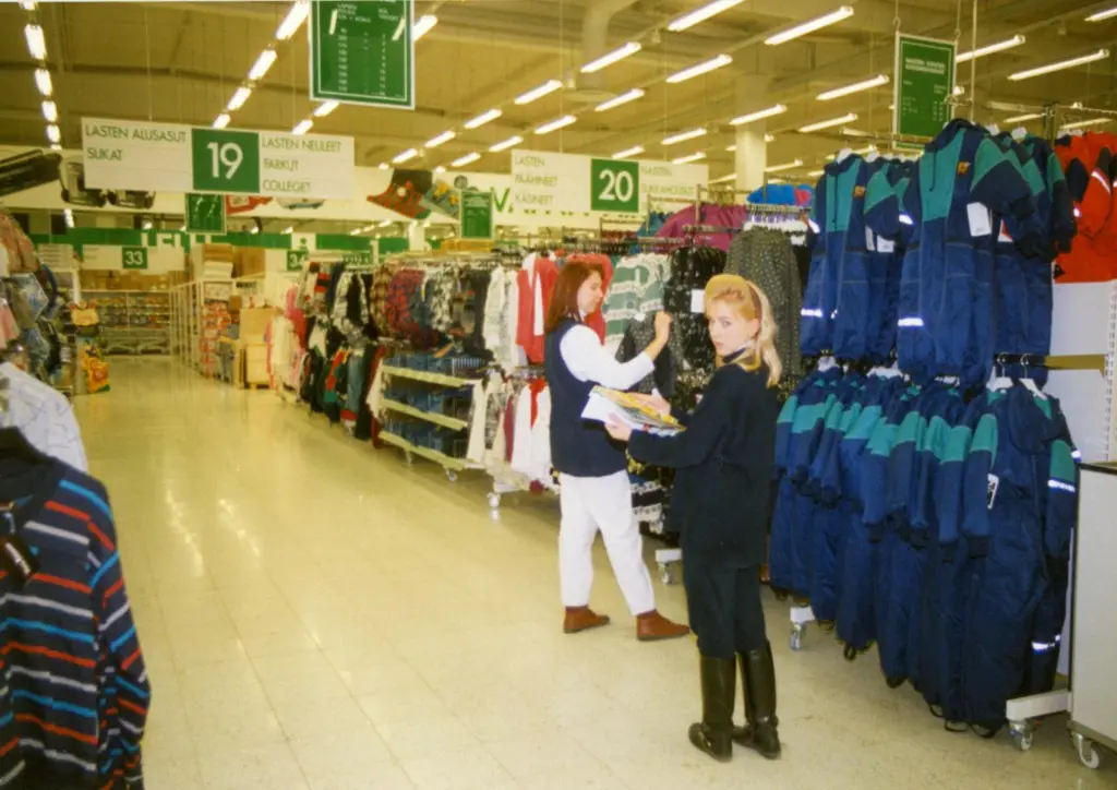 ─ Alussa tavara ei meinannut riittää millään, joten tavarantoimittajia piti kontaktoida suoraan ja tehdä maakuntamatkoja tavaraa haalimassa. Esille pyrittiin saamaan isot massat edullista tavaraa, jotta valtavalla asiakasmäärällä oli ostettavaa, silloinen pukeutumisen osaston päällikkö Arja Kinnunen sanoo.