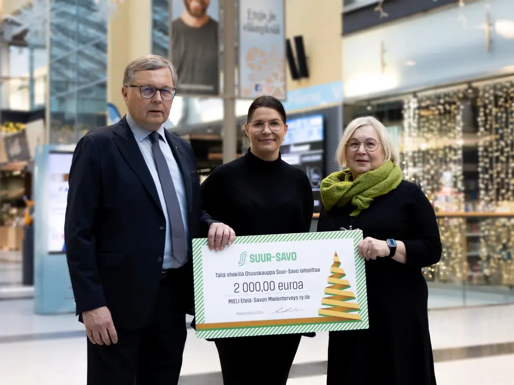 Osuuskauppa Suur-Savo kysyi tänäkin vuonna asiakasomistajiltaan mihin kohteeseen he haluaisivat osuuskaupan joulukorttirahat lahjoitettavan. Kyselyssä oli vaihtoehtoina kolme tärkeää lahjoituskohdetta: nuorten mielenterveyden tukeminen, vähävaraisten lapsiperheiden auttaminen sekä senioritoiminnan tukeminen. Lähes puolet kyselyyn vastanneista päätyi antamaan äänensä nuorten mielenterveyden tukemisen puolesta. Asiakasomistajien toivetta kuunnellen osuuskauppa on päättänyt lahjoittaa tämän vuoden joulukorttirahat MIELI Etelä-Savon Mielenterveys ry:lle.– Otamme kiitollisena lahjoituksen vastaan. Osuuskauppa Suur-Savo ja sen asiakkaat ovat huomioineet yhden tämän hetken suurimmista huolenaiheista, nuoret ja nuorten mielenterveyden vahvistamisen. Lahjoitusvaroilla Mieli Etelä-Savon mielenterveys ry tarjoaa Osuuskauppa Suur-Savon toiminta-alueella maksutta Nuori Mieli -koulutuksia nuoria kohtaaville aikuisille, opettajille, valmentajille, vanhemmille, isovanhemmille. Nuori Mieli -koulutuksen tavoitteena on edistää lasten ja nuorten mielenterveyttä lisäämällä heitä kohtaavien aikuisten mielenterveysosaamista, kertoo MIELI Etelä-Savon Mielenterveys ry:n kriisikeskuksen johtaja Helena Pohjanvirta.– On hienoa, että asiakasomistajamme voivat olla mukana vaikuttamassa vastuullisten ja tärkeiden lahjoitusten valintasuuntiin. Nuorten mielenterveyden tukeminen on erityisen ajankohtainen ja tärkeä aihe. Meille on erittäin tärkeää, että voimme olla mukana tukemassa tätä työtä yhdessä MIELI Etelä-Savon Mielenterveys ry:n kanssa, kertoo Osuuskauppa Suur-Savon toimitusjohtaja, kauppaneuvos, Ari Miettinen.– Nuorten mielenterveyden tukemisella parannetaan elämän mielekkyyden kokemusta sekä vahvistetaan kykyä selvitä elämässä erilaisista haasteista ja vastoinkäymisistä. Joulukorttirahalahjoituksella voimme yhdessä osoittaa joulumieltä ja edesauttaa nuorten hyvinvointia heille vaikeissa elämäntilanteissa, sanoo Osuuskauppa Suur-Savon asiakkuuspäällikkö Leena Vironen.Kysely toteutettiin digitaalisilla SuSa-vuorovaikutusnäytöillä, jotka löytyvät Mikkelin, Pieksämäen ja Savonlinnan Prismoista sekä Kauppakeskus Stellasta Sokos Mikkelistä sekä Ravintola Greeneristä Mikkelistä. SuSa-näytöt toimivat vuorovaikutuskanavana asiakkaiden ja osuuskaupan välillä, ja kysymykset vaihtuvat näytöillä säännöllisesti.Lisätietoja:Osuuskauppa Suur-Savo