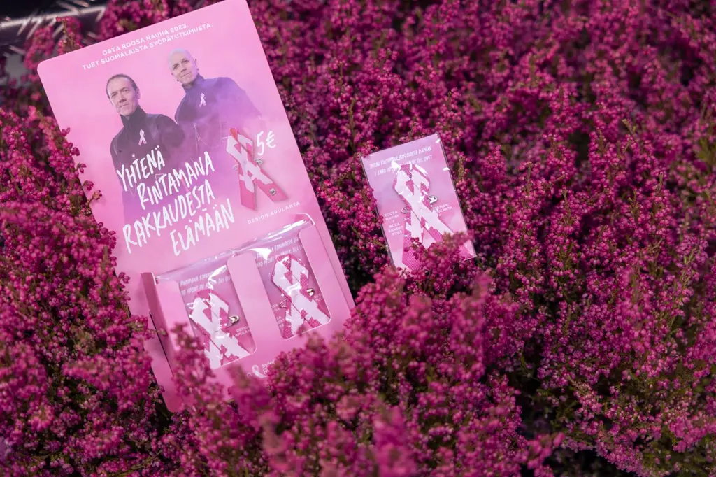 Viime vuonna Roosa nauha -keräys tuotti ennätykselliset 5 miljoonaa euroa. Roosa nauha -päivää vietetään tänä vuonna 6.10., ja Roosa nauha Tanssii tähtien kanssa -lähetys nähdään tv:ssä 29.10.S-ryhmä osallistuu keräykseen myymällä Roosa nauhoja kaikissa marketkaupan ketjujen myymälöissä sekä Sokoksissa, Emotioneissa ja ABC:illä. Nauhojen tuotto tilitetään kokonaisuudessaan keräystä järjestävälle Syöpäsäätiölle. Roosa nauhan myyntihinta on 5 euroa. Myynnissä on lisäksi rajoitettu erä Roosa nauha -rannekkeita, joiden myyntihinta on 9 euroa. Myyntiaika on marraskuun loppuun asti.Uutta: tänä vuonna osallistumme ensimmäistä kertaa myös Roosa nauha -ruusuilla ja -kukkakimpuilla, joiden myynnistä lahjoitamme keräykseen 0,20 euroa myytyä kimppua kohden. Lisäksi valikoimissa on tuttuun tapaan monia tavarantoimittajien kampanjatuotteita.Teemana tämän vuoden keräyksessä ovat lasten syövät. Vuoden 2023 Roosa nauhan ovat suunnitelleet Apulanta-yhtyeen Toni ja Sipe. He kertovat suunnittelemastaan nauhasta näin: ”Meidän liekkimme roihuaa rakkaudesta elämään. Rakkaus on taistelua hyvän puolesta. Suunnittelemamme farkkunauha edustaa rintamaa, jota puolustamme. Se on kapina, jossa voittaja on elämä. Tämä Roosa nauha voi olla viimeinen niitti, jolla syöpä nujerretaan. Se on airut syöpätutkimuksen takana. Kannetaan Roosa nauhaa yhtenä rintamana rakkaudesta elämään.”